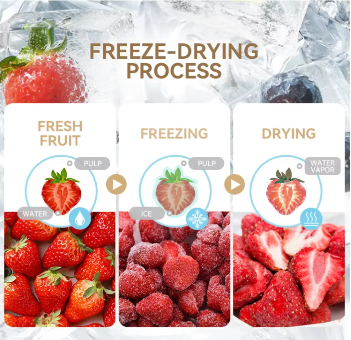 Freeze- dried fruits and vegetables taste the same as fresh fruits and vegetables after adding water, keep the original flavor and look. Airwoods freeze dryers produce food that looks and tastes better than store-bought freeze-dried food.